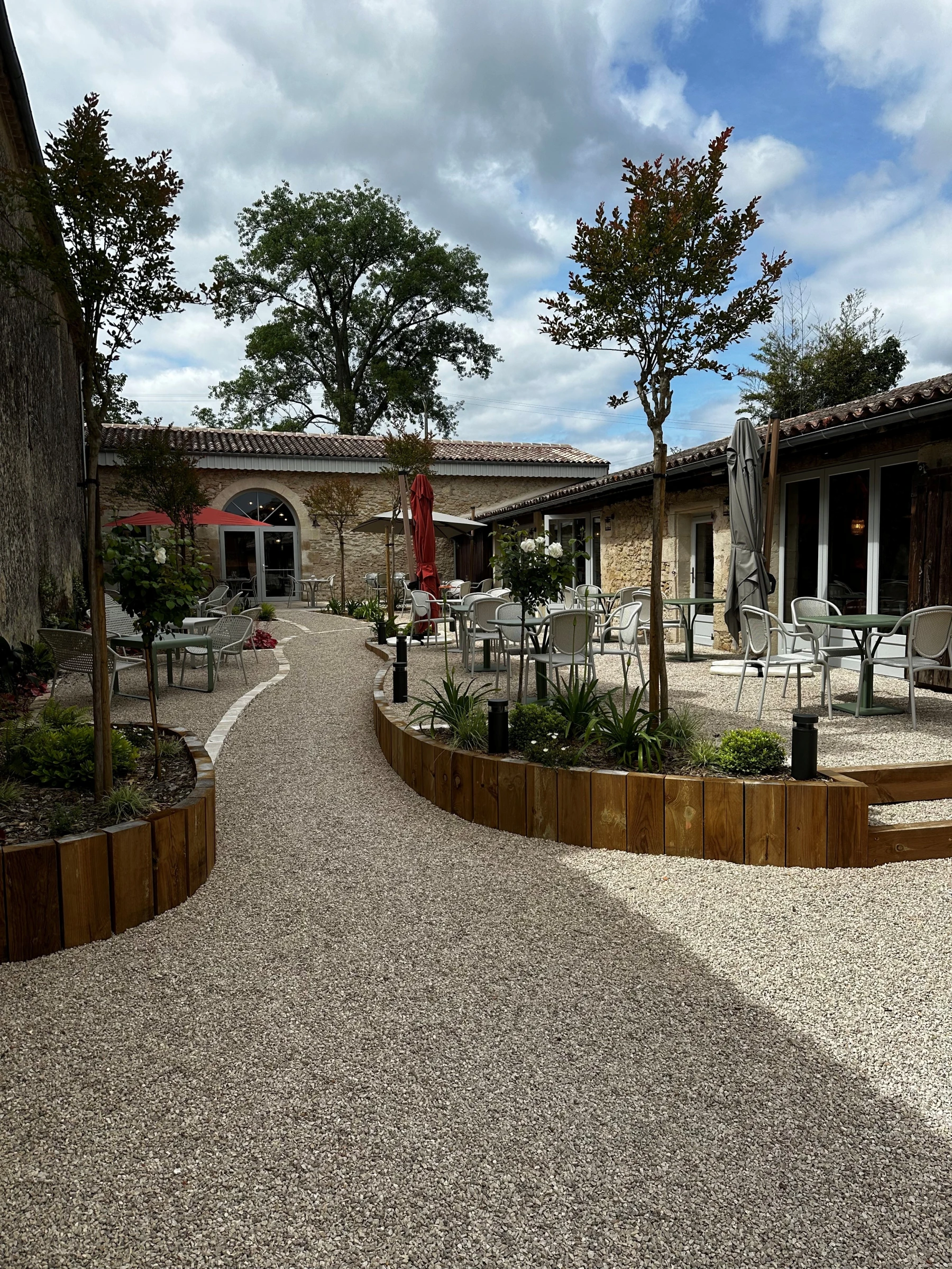 Aménagement paysager d’un restaurant à Sauternes réalisé par Equin Paysage